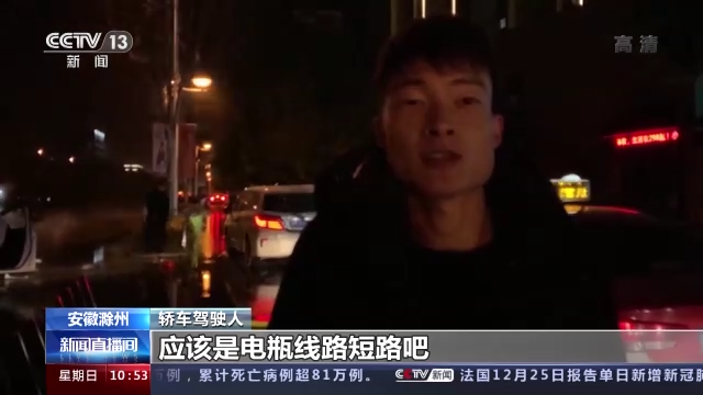 轎車駕駛?cè)耍簯?yīng)該是電瓶線路短路,我看車有點煳味、冒煙,就把車靠邊停,然后打110、119報警了。