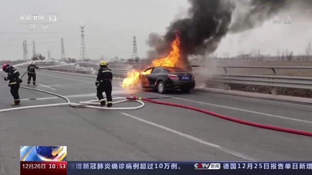 不僅是市區(qū)道路和國道,12月23日中午,在天津東麗區(qū)一快速公路上,一輛小轎車行駛途中發(fā)生自燃,大火很快將車頭和駕駛室引燃。